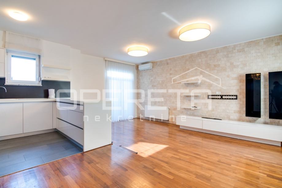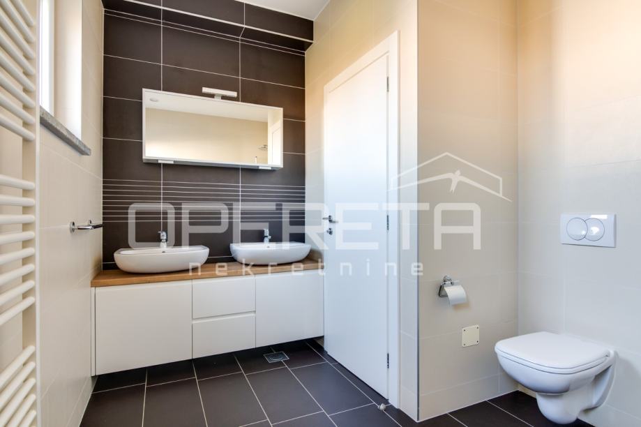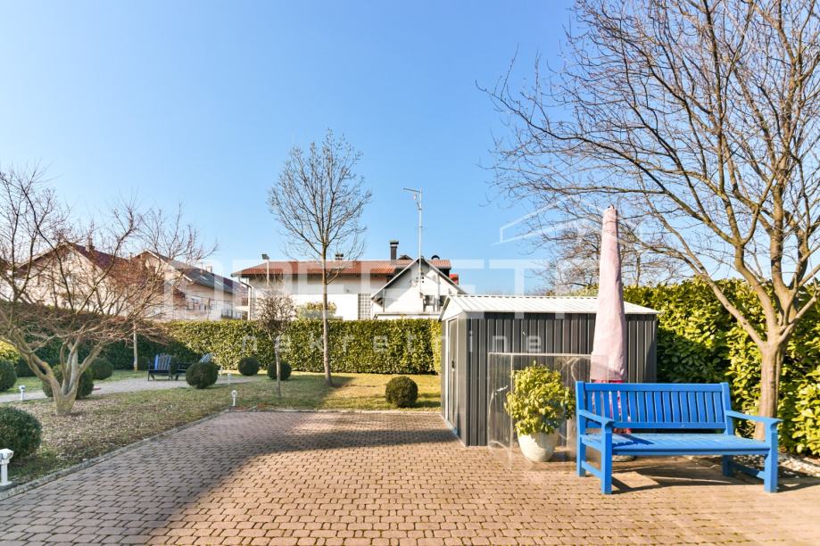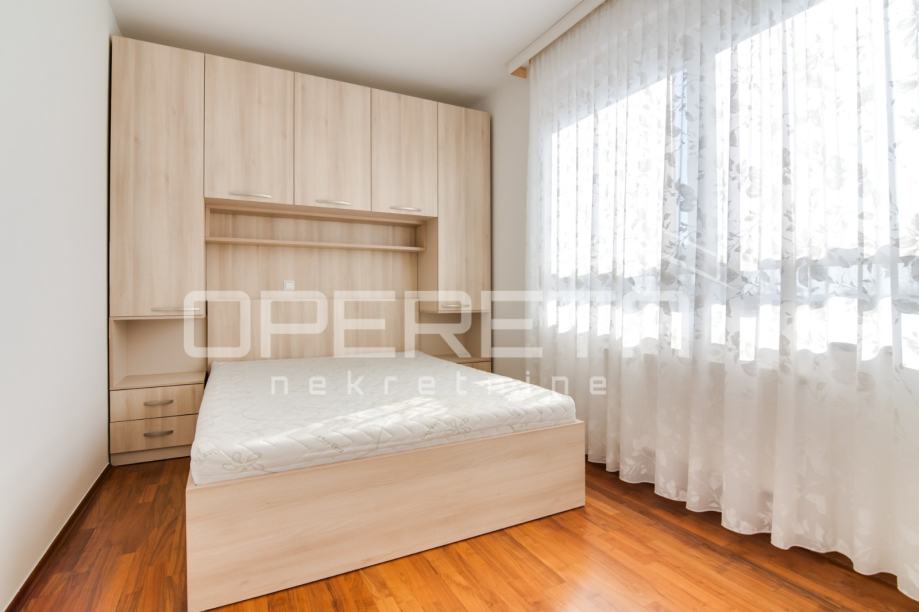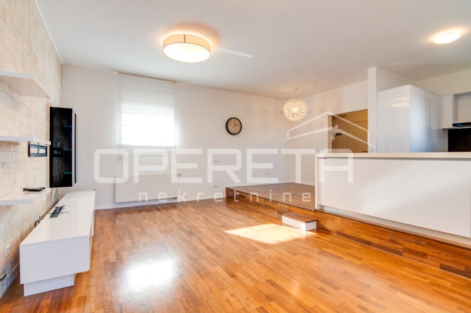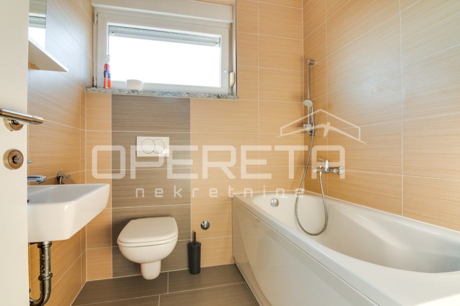 Stan se sastoji od 4 etaže, 4 spavaće sobe, 2 kupaonice, smješten na parceli od 1548m2. Urbana Vila od samo 3 stanbene jedinice, veliki zajednički vrt sa dječjim igralištem, prostorom za druženje, roštiljem, vrtnom kućicom.