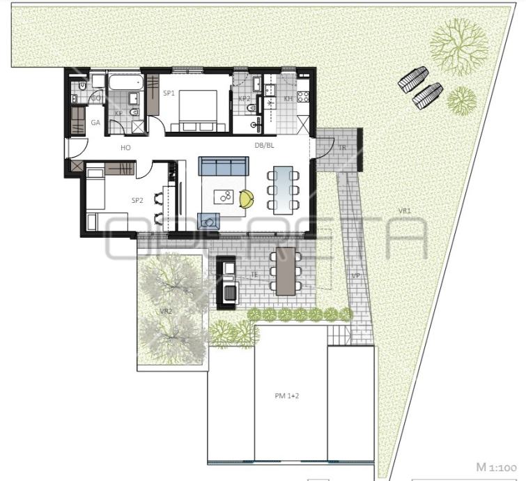 PRODAJA, STAN, Novogradnja, Maksimir. Stan se sastoji od hodnika, garderobe, wc-a,2 kupaonice sa wc-om, 2 spavaće sobe, kuhinje, dnevnog boravka, blagavaonice, terase, 2 vrta i 2 parkirna mjesta u sveukupnoj kvadraturi 343,60 m2 (NKP 114,21).