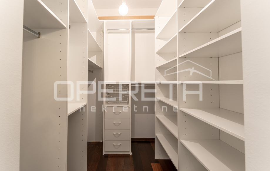 Optimalna organizacija: veliki walk-in ormar (4.2 m²) i puno ugradbenih ormara rađenih po mjeri.