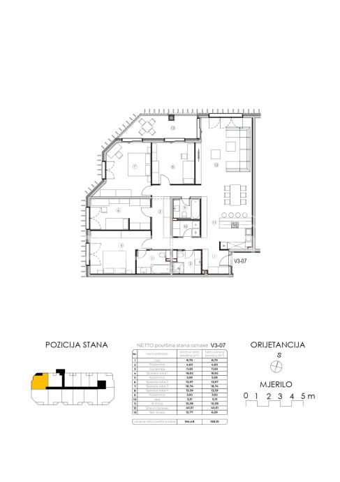 Smješten na trećem katu, ovaj prostrani stan od 158,1 m² dizajniran je za one koji cijene prozračnost i vrhunski komfor.