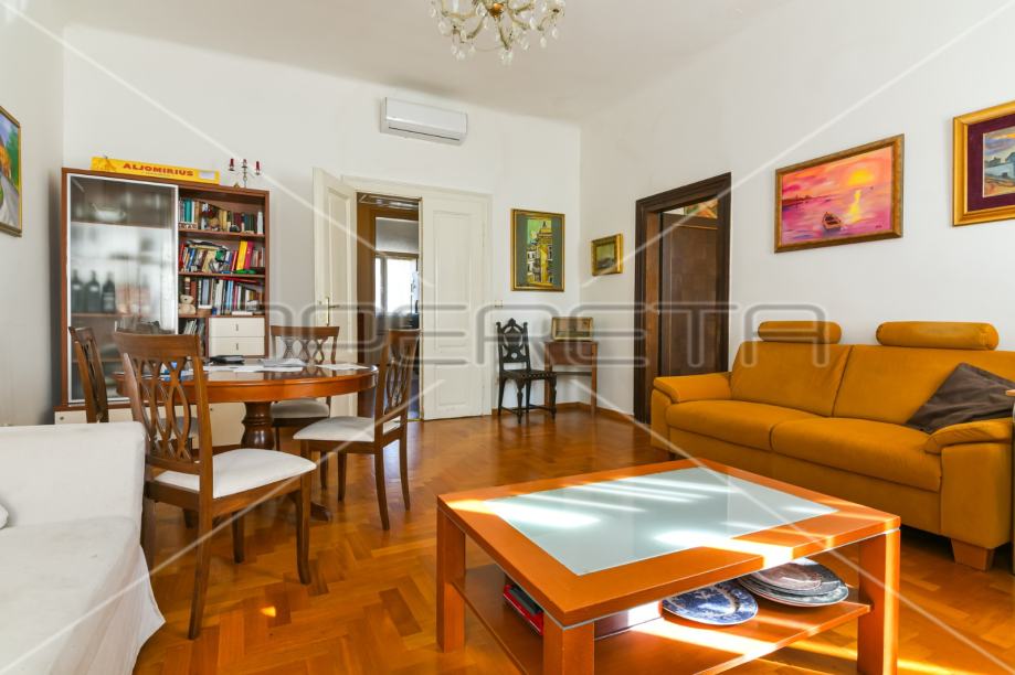 Prodaje se 4sobni stan na atraktivnoj lokaciji u 0doličnoj zgradi nadomak glavnog trga. Sastoji od dnevnog boravka, tri spavaće sobe, radne sobe, kuhinje, kupaonice i wc-a. Spremište u podrumu i na tavanu. Stan je kompletno renoviran prije 15 godina; sve instalacije, vanjska stolarija, podovi. Moguće napraviti 2 stana pa je odlična prilika i za investiciju. Zgrada posjeduje pravovaljanu Odluku o obnovi ( nalazi se unutar kulturno-povijesne cjeline ) na cjelokupni teret državnog i gradskog proračuna.