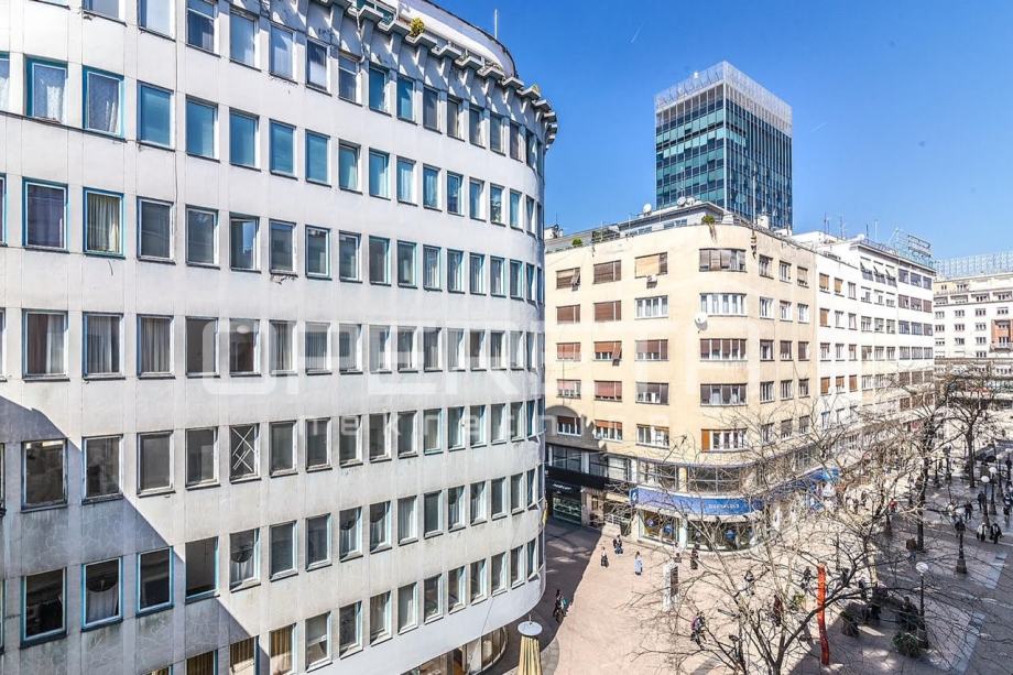 Strogi centar, pješačka zona, garsonijera 33m2 na 4. katu s liftom. Zgrada je izuzetno kvalitetna, betonska deka.
