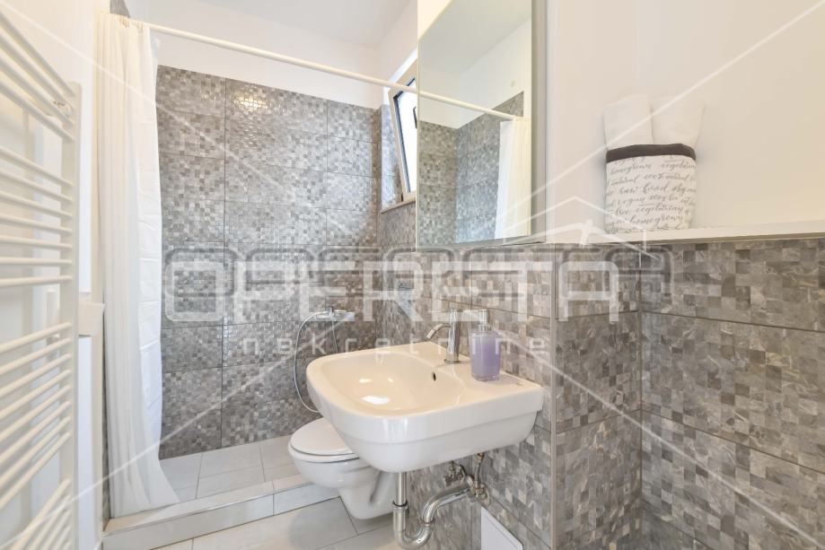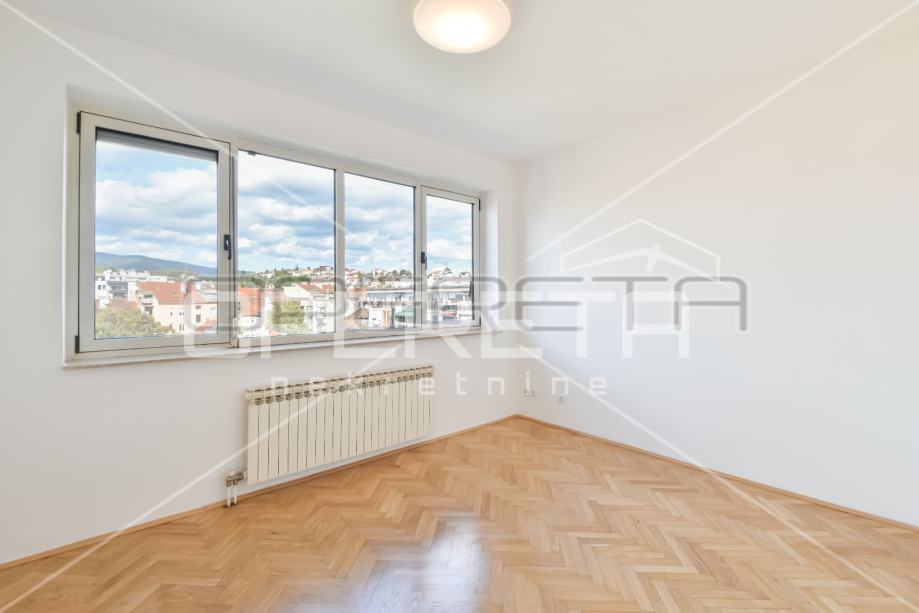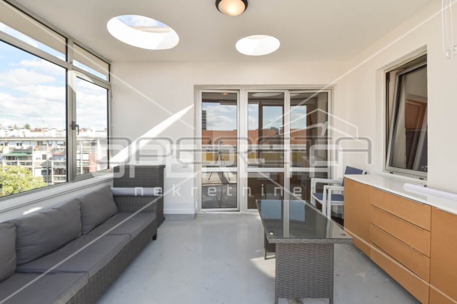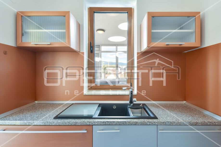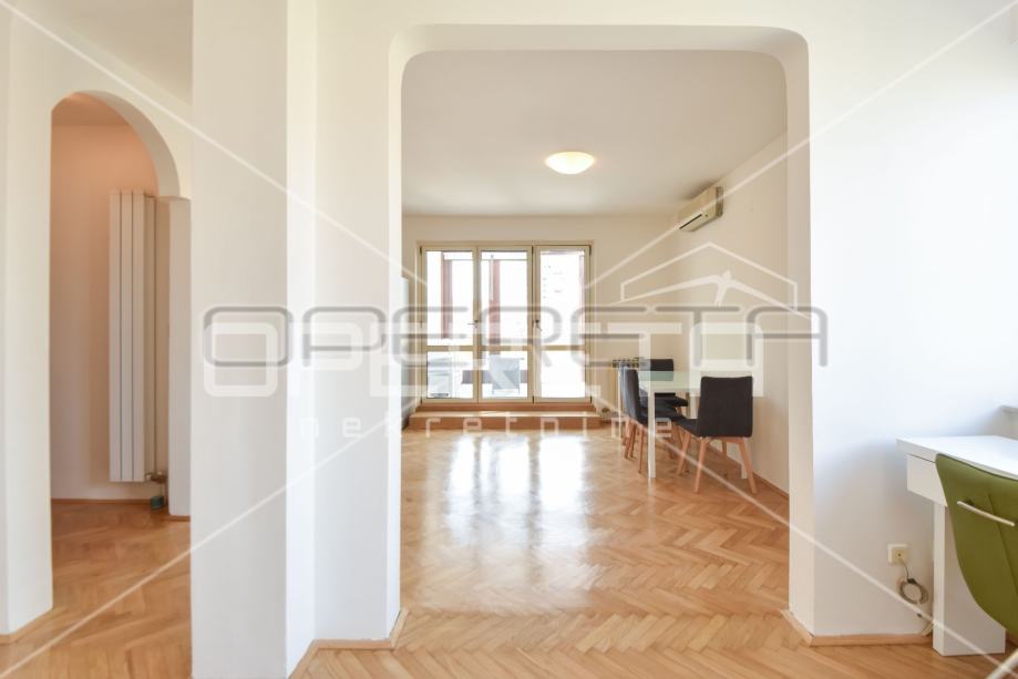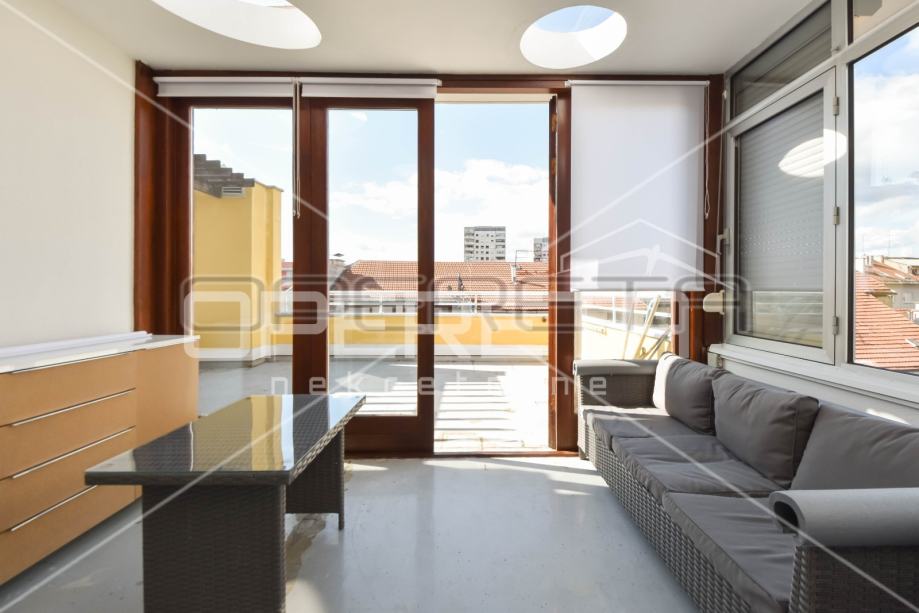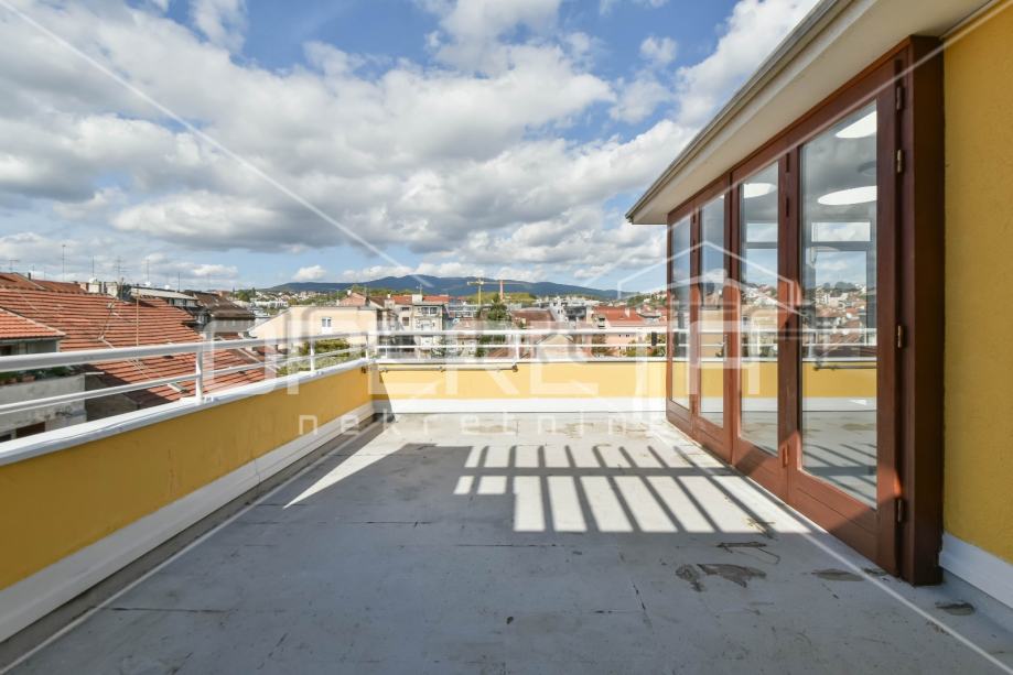 Prodaje se 2S stan sa velikom terasom na zadnjem petom katu armirano betonske zgrade s liftom nadomak samog centra grada. U 70 m2 zatvorenog prostora vrlo lako je moguće dobiti dodatnu spavaću sobu. Stanu pripada i spremište od 4m2 u podrumu zgrade gdje se nalazi i atomsko sklonište. Stan je trenutno namješten pa je u stvarnosti drugačiji dojam. Tražena i rijetko dostupna lokacija nadomak svih potrebnih sadržaja.