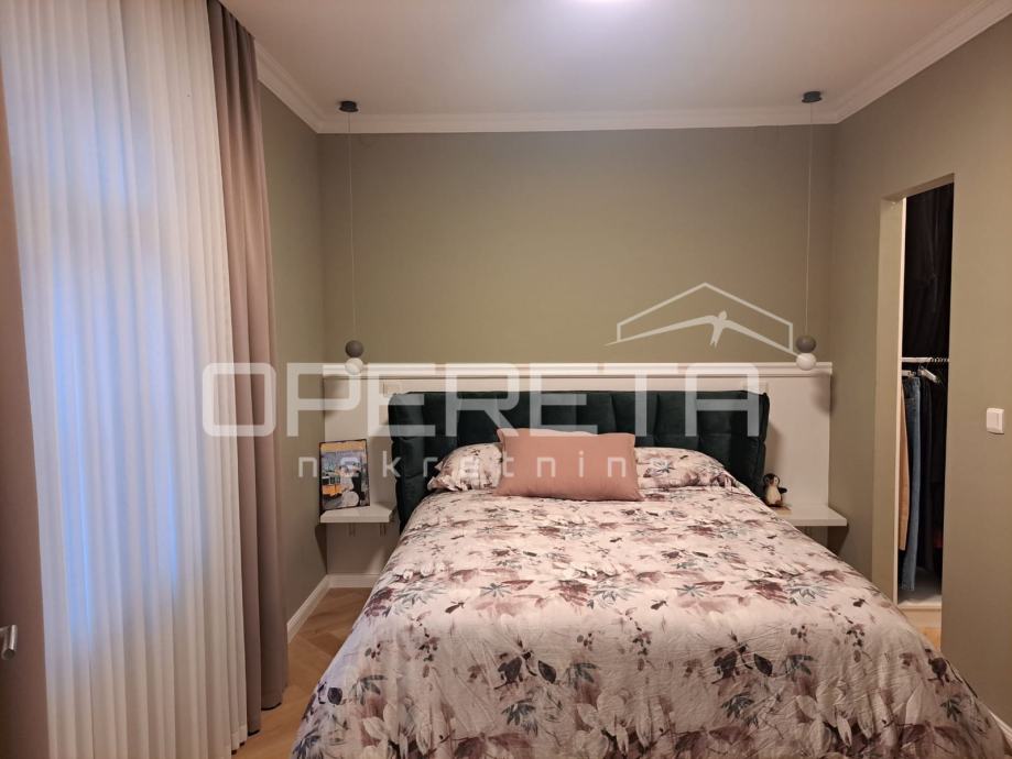 Na izuzetnoj lokaciji u staroj jezgri grada, a opet u dvorišnoj zgradi što garantira mir i tišinu smjestio se ovaj iz temelja novoadaptirani stan. Hidroizolacija, termoizolacija prve kategorije, podno grijanje, zidovi, podovi, stolarija, sve potpuno novo sa dugom garancijom. Sastoji se od ulaznog hodnika, dvije spavaće sobe, kuhinje, dnevnog boravka i blagovaonice u jednom, kupaonice s wc-om, garderobe, dodatne sobe od 6 m2 te unutarnje terase. Papiri čisti.