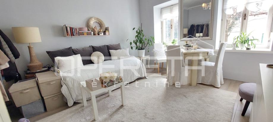 PRODAJA, STAN ZAGREB, CENTAR, HERCEGOVAČKA Lijep i svijetao 1soban stan od 28m2 u čvrstoj i postojanoj zgradi. Sastoji se od ulaznog hodnika, kuhinje s blagovanjem, dnevne/spavaće sobe te kupaonice s wc-om. Pripada mu i manje spremište pored ulaza u stan. Renoviran 2018. Podno grijanje na struju, kuhanje na plin, topla voda na električni, protočni bojler. Zgrada je nakon potresa 2020. dobila zelenu naljepnicu, a obnovljeni su krov i fasada. U vl.listu je stan opisan kao suteren, ali je u naravi, s dvorišne strane u visokom prizemlju tj. ni u jednom dijelu nije ukopan u zemlju te je suh, a zbog ugodne jugo-zapadne orijentacije je i osunčan. Gleda na miran i uredan vrt, u neposrednoj je blizini tj. par minuta hoda od Vinogradske bolnice, Parka Franje Tuđmana te svih sadržaja centra grada. Idealan za par ili samce te za dugoročni najam. Prodaje se namješten.