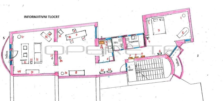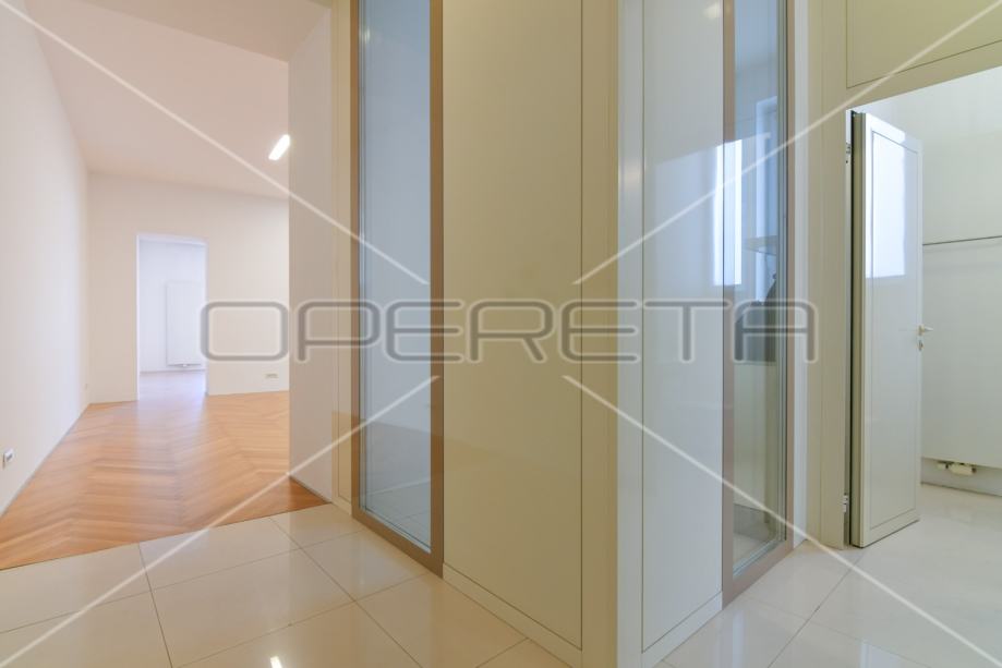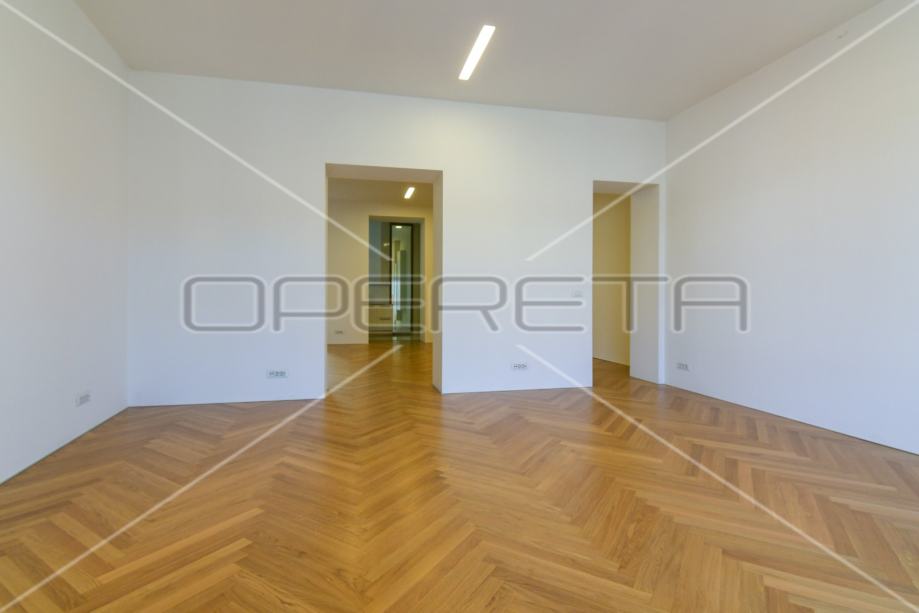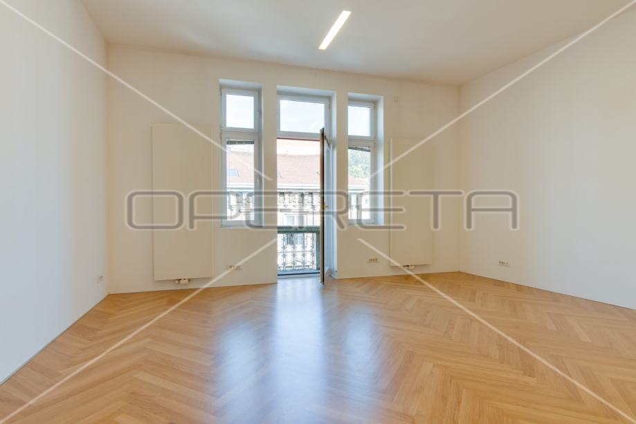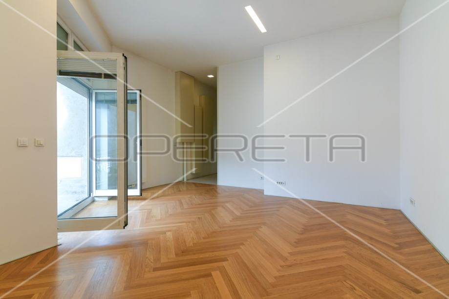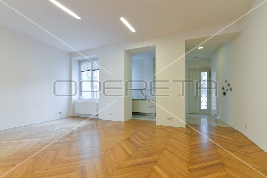 kuhinjom, velikim prostorom za blagovanje i dnevnim boravkom, s čijeg balkona imate pogled na Ilicu, katedralu, trg B. Jelačića, te degažmana koji vodi u gostinjski WC, prostranu kupaonicu s kadom i veliku spavaću sobu, koja ima izlaz na balkon s dvorišne strane zgrade.