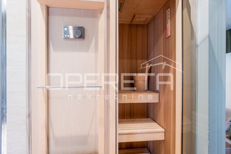 Master spavaća soba od 26m2 ima prostranu kupaonicu sa saunom, te izlazom na dvorišnu terasu.