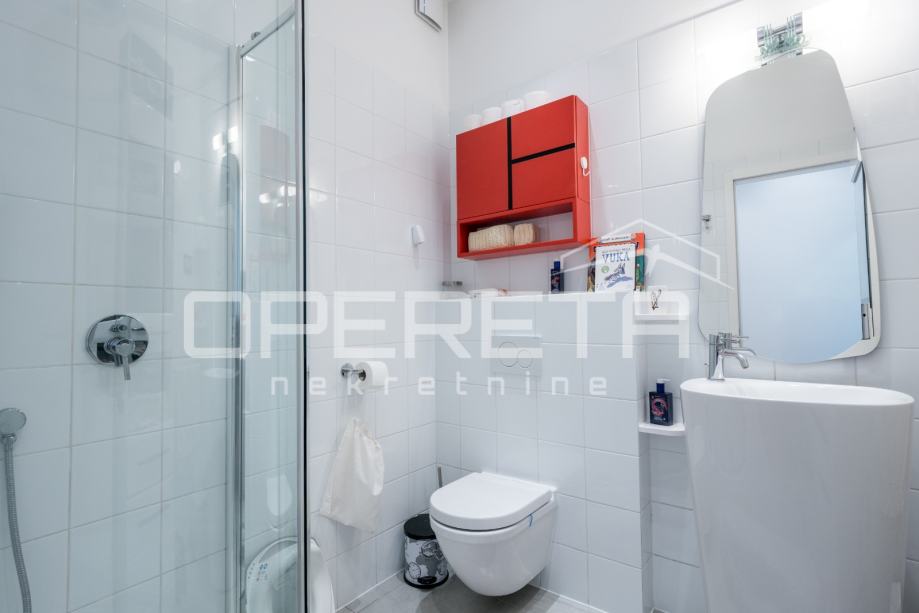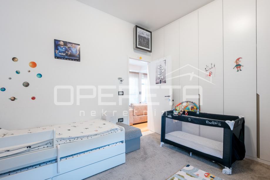 Osim toga, stan ima dodatnu spavaću sobu i kupaonicu, te vešeraj, a pripadaju mu i 2 garažna mjesta