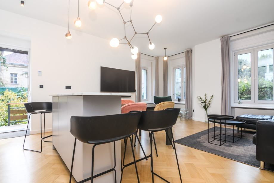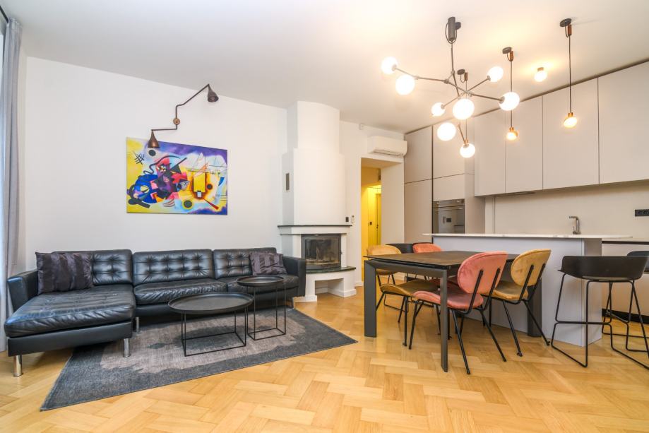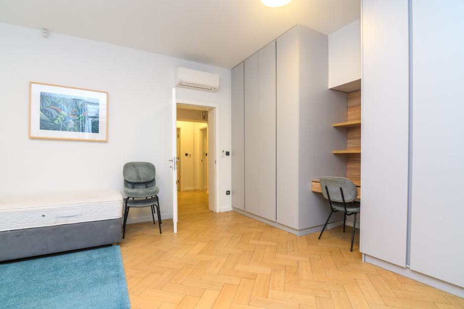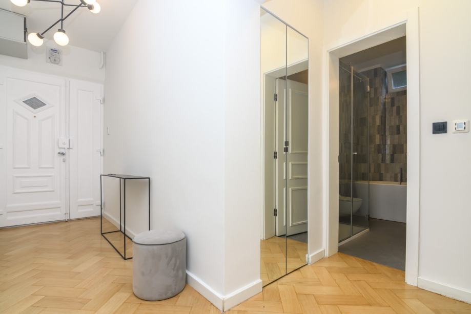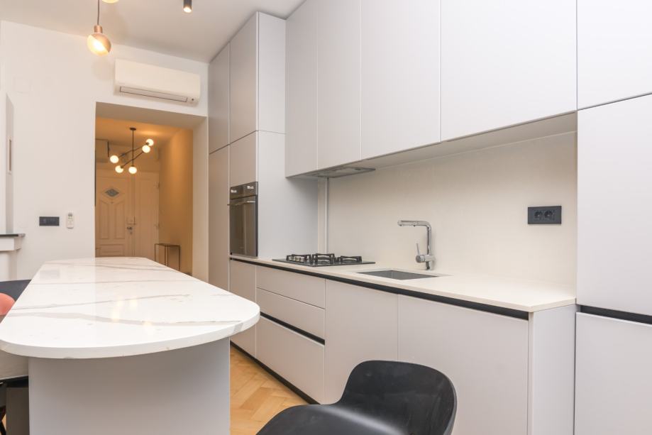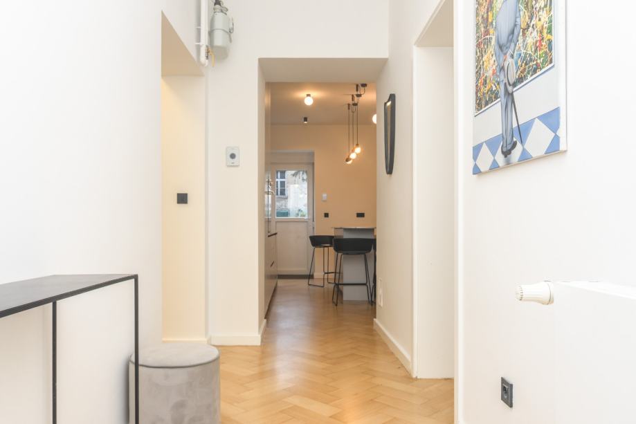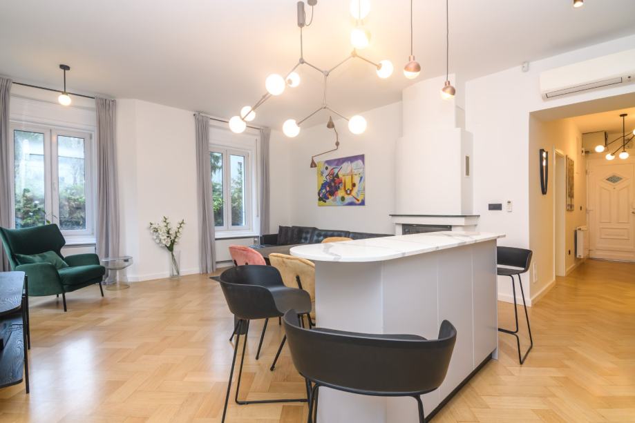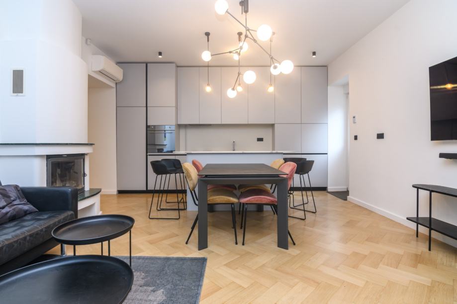 Kompletno obnovljen i uređen 2019 godine, etažno plinsko grijanje, podno grijanje u kupaonicama, novi Bosch bojler, Smeg aparati u kuhinj, Daikin klima u svim sobama, alarm, video nadzor, visina stropa 3,20 m, pvc stolarija.