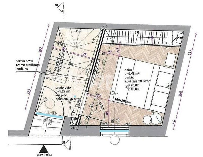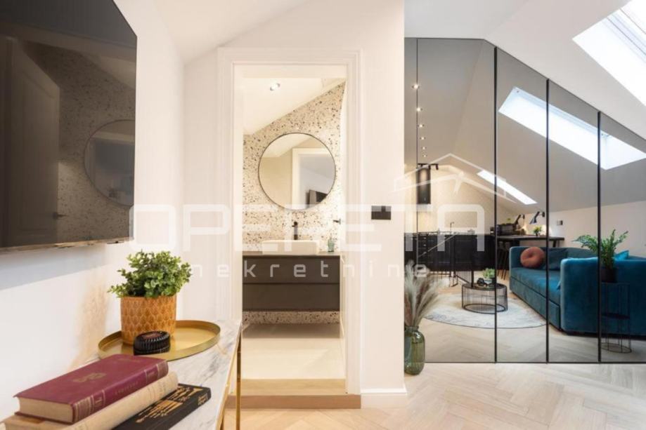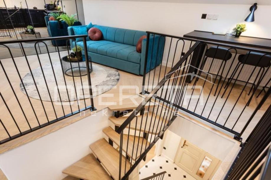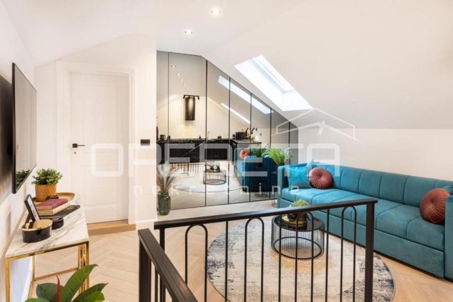 PRODAJA, STAN, ZAGREB, CENTAR, TKALČIĆEVA. Lijep, kompletno renoviran 2etažan stan od 47m2 (u vl.listu). Sastoji se od spavaće sobe, koja se nalazi na prizemnoj etaži, te dnevnog boravka s kuhinjom i blagovanjem, te kupaonice s wc-om u potkrovlju. Prodaje se potpuno namješten i opremljen. Idealan za turistički najam. Neposredna blizina svih znamenitosti najužeg centra i Gornjeg grada.
