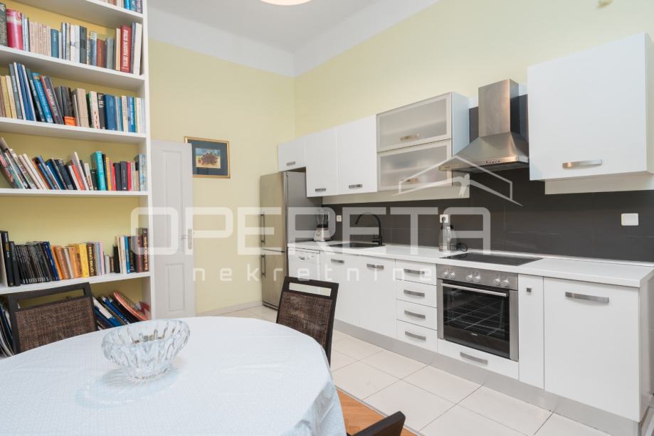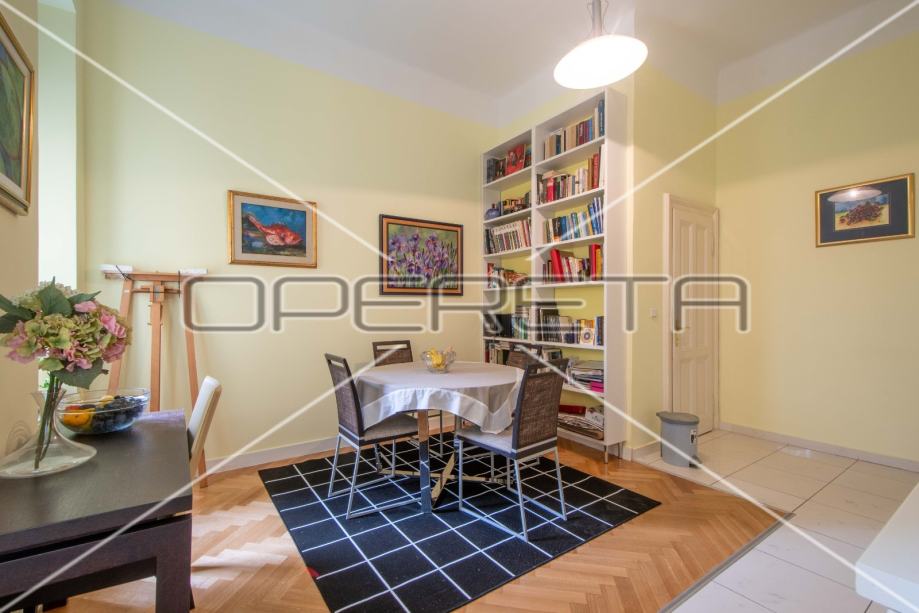 Smješten na ekskluzivnoj lokaciji svega 10 minuta pješke od Trga bana Jelačića i svih sadržaja koje nosi centar grada, prodaje se prostran trosoban stan građanskog tipa, sa velikim prostorijama, visokim stropovima i pun svjetlosti, sa pogledom u zelenilo.