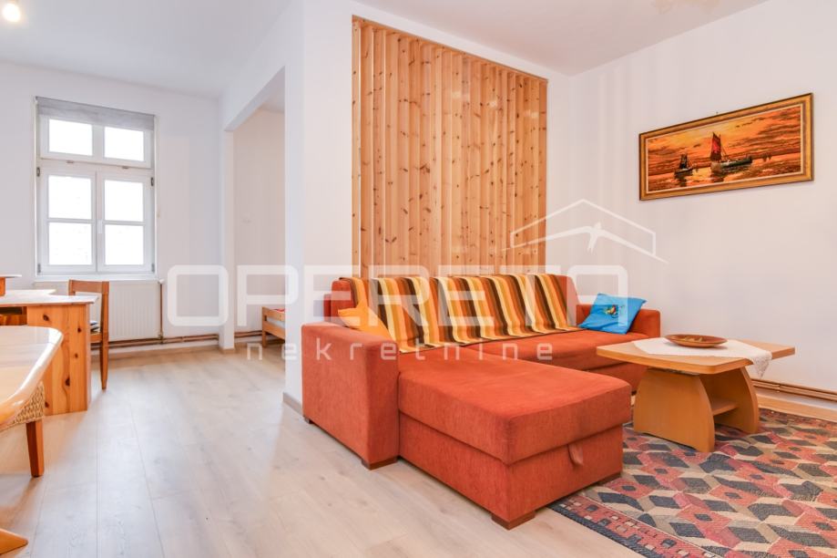 Stan se nalazi na gradskome Korzu, na svega par koraka udaljen od svih dostupnih urbanih sadržaja koje grad pruža, prekrasnog šetališta, kao i na par minuta vožnje do priključka na autocestu.