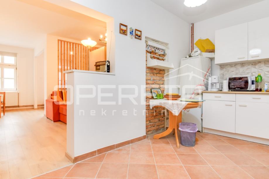 Prodaje se stan u strogom centru grada Karlovca, NKP 71,21 m2 koji se nalazi u visokom prizemlju zgrade,a sastoji se od ulaznog prostora, predsoblja sa radnom sobom,,kupaonice, 2 odvojena WC-a, kuhinje sa blagovaonicom te 2 sobe.