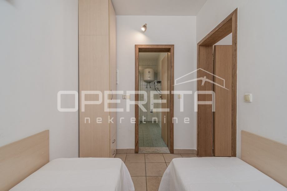 Stan se sastoji od prostranog open space boravka s kuhinjom i blagovaonicom, manje spavaće sobe i komforne kupaonice ( ukupno 36,75 m2 )