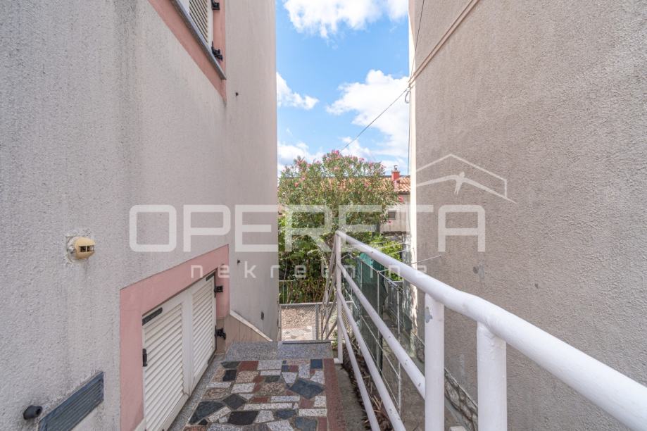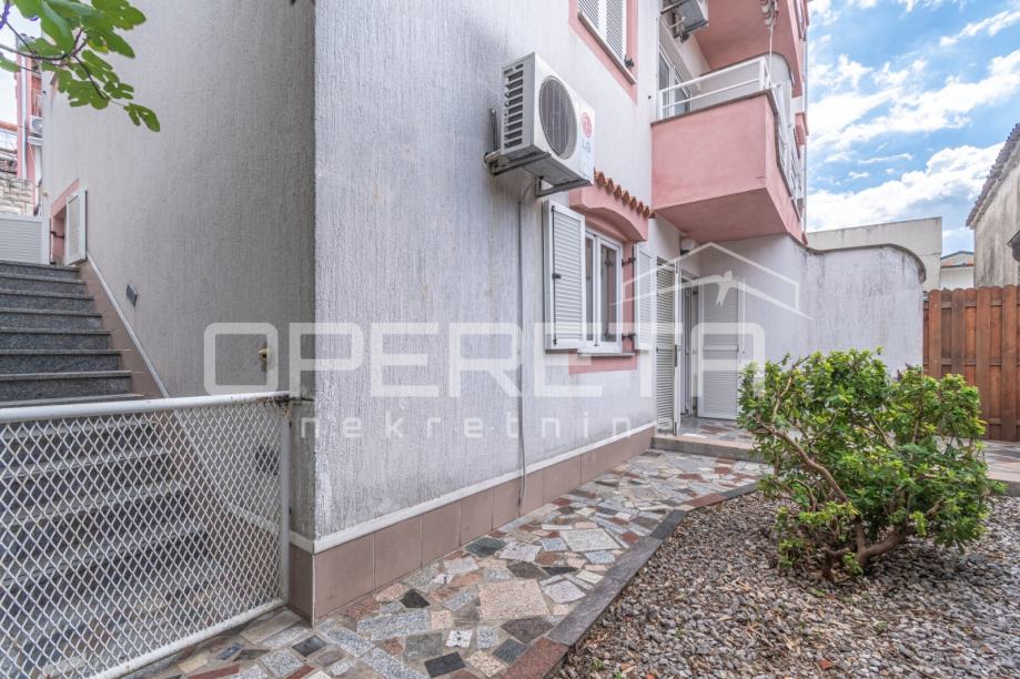 Ispred ulaza u stan je lijepa popločana terasa, kao produžetak dnevnog boravka, na koju se nastavlja ograđeni vrt (veličine 37,70 m2 ), koji omogućuje druženje, roštiljanje, chillanje i na ljetnim vrućinama.