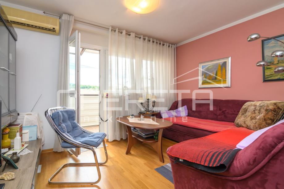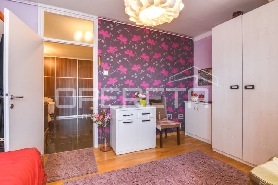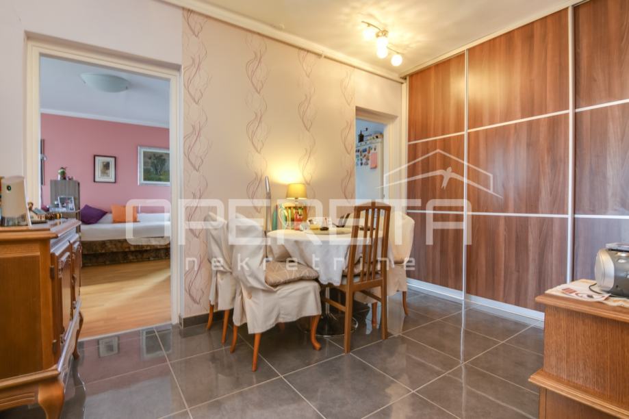 Prodaje se stan na traženoj lokaciji, u blizini svih sadržaja i javnog prijevoza koji se sastoji od ulaznog hodnika, blagovaonice, dnevnog boravka s izlazom na balkon površine 5,74m2, prostrane spavaće sobe, kupaonice i odvojenog toaleta.