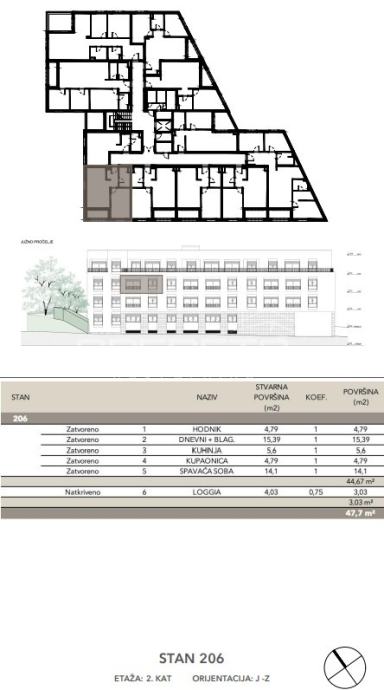Stan, NOVOGRADNJA, prodaja, Črnomerec, Kuniščak, 2sob, 47,7m2