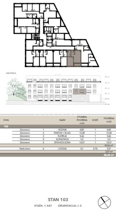 Stan, NOVOGRADNJA, prodaja, Črnomerec, Kuniščak, 2sob, 48,63m2