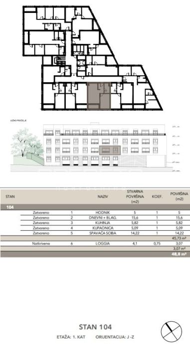 Stan, NOVOGRADNJA, prodaja, Črnomerec, Kuniščak, 2sob, 48,8m2