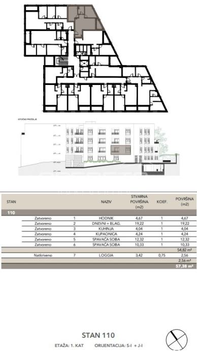 Stan, NOVOGRADNJA, prodaja, Črnomerec, Kuniščak, 3sob, 57,38m2