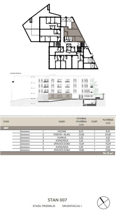 Stan, NOVOGRADNJA, prodaja, Črnomerec, Kuniščak, 3sob, 74,12m2