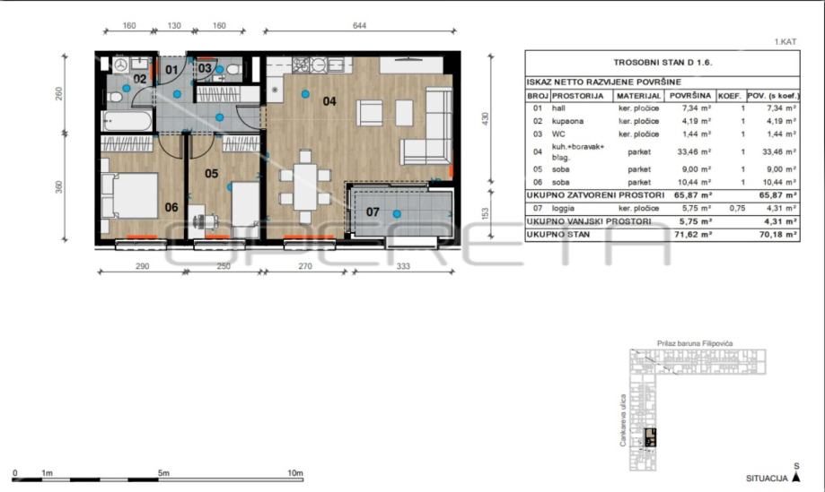 PRODAJA, NOVOGRADNJA, PRILAZ BARUNA FILIPOVIĆA, 70,18m2, 3S.