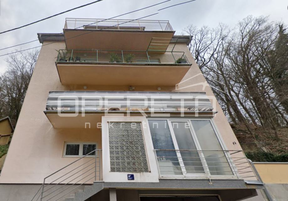 Prodaje se izvrstan, prostran i prozračan 2,5soban stan s terasom, na prvom katu (od ukupno 3) uredno održavane zgrade, na izrazito atraktivnoj lokaciji koja graniči s prirodom/šumom, a gotovo u centru grada. Orijentacije SZ-JI, sastoji se od "open space" dnevnog boravka s blagovaonicom i kuhinjom te izlazom na terasu, spavaće sobe, kupaonice s wc-om, izbe i ulaznog hodnika. Dio terase je zatvoren u uređenu prostoriju sa staklenim krovom i podnim grijanjem. Pravo korištenja s terasom povezanog i ograđenog vrta od cca 8 m2, u potpunoj privatnosti. U cijenu uključena garaža od 9,18 m2. Mirna mikro lokacija okružena zelenilom ( terasa ima izlaz u prirodu/šumu), u neposrednoj blizini centra grada i svih sadržaja potrebnih za kvalitetan život (do Ilice 3 min vožnje). Moguća kupnja kreditom! Preporuka!
