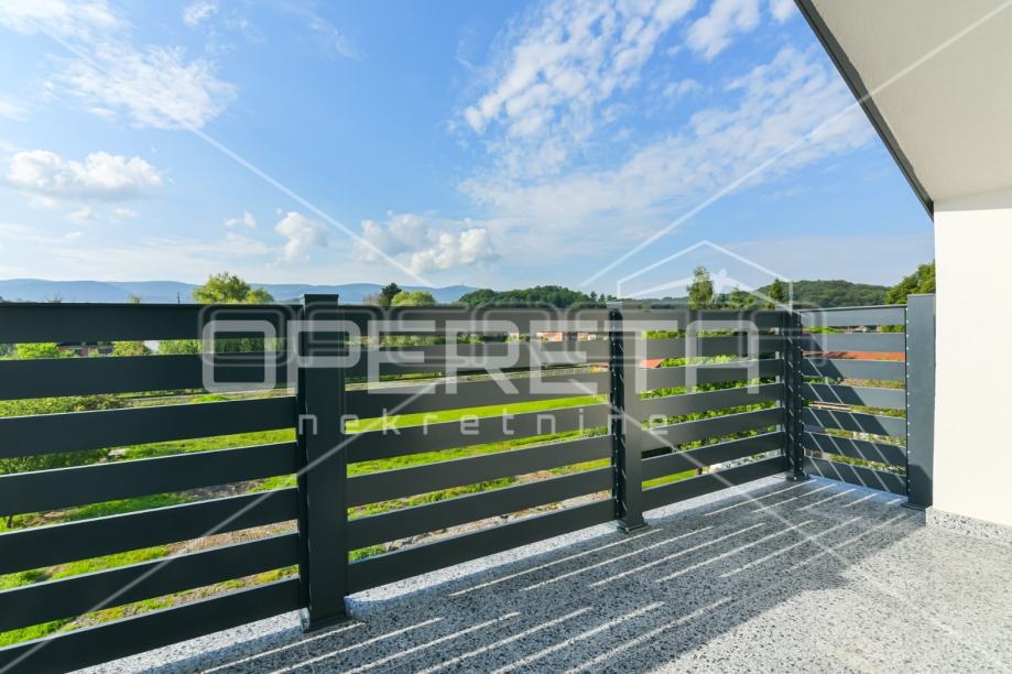 Stan se sastoji od "open space" dnevnog boravka s blagovaonicom i kuhinjom te izlazom na balkon, 2 spavaće sobe od kojih jedna ima izlaz na balkon, kupaonice s wc-om te ulaznog hodnika. Stan je građen po standardima moderne gradnje: podno grijanje, el. rolete, video portafoni, protuprovalna vrata i opremljen uređajima vrhunske kvalitete. Uz stan dolaze 2 vanjska natkrivena parkirna mjesta u dvorištu zgrade ( uključena u cijenu). Mirna lokacija sa nekoliko identičnih/tipskih zgrada, okružena zelenilom i brežuljcima te istovremeno stambeno i turistički vrlo atraktivna, u neposrednoj blizini svih bitnih sadržaja za kvalitetan život te poznatih i popularnih termi. Do Zagreba 40 min vožnje!