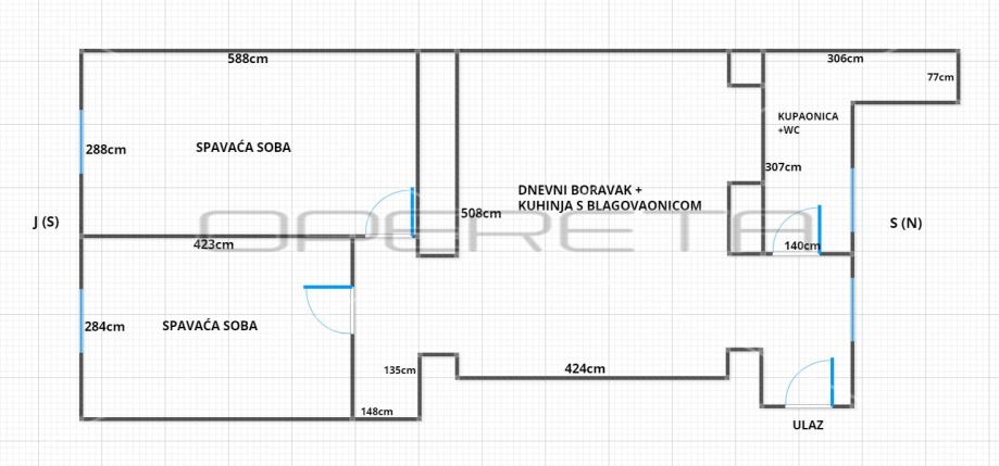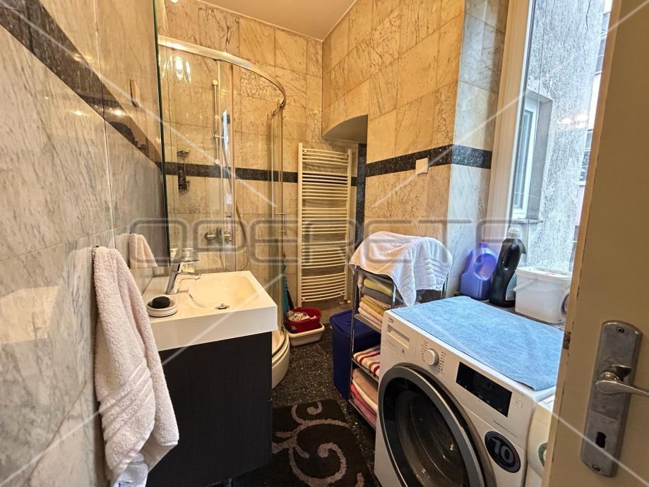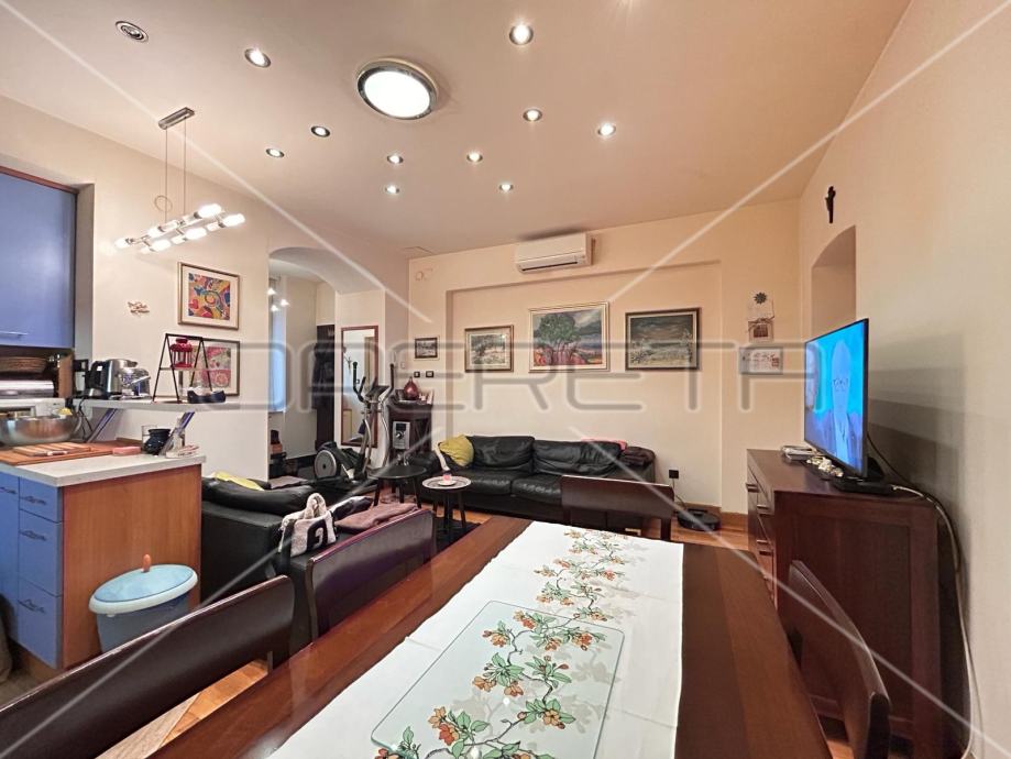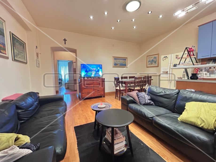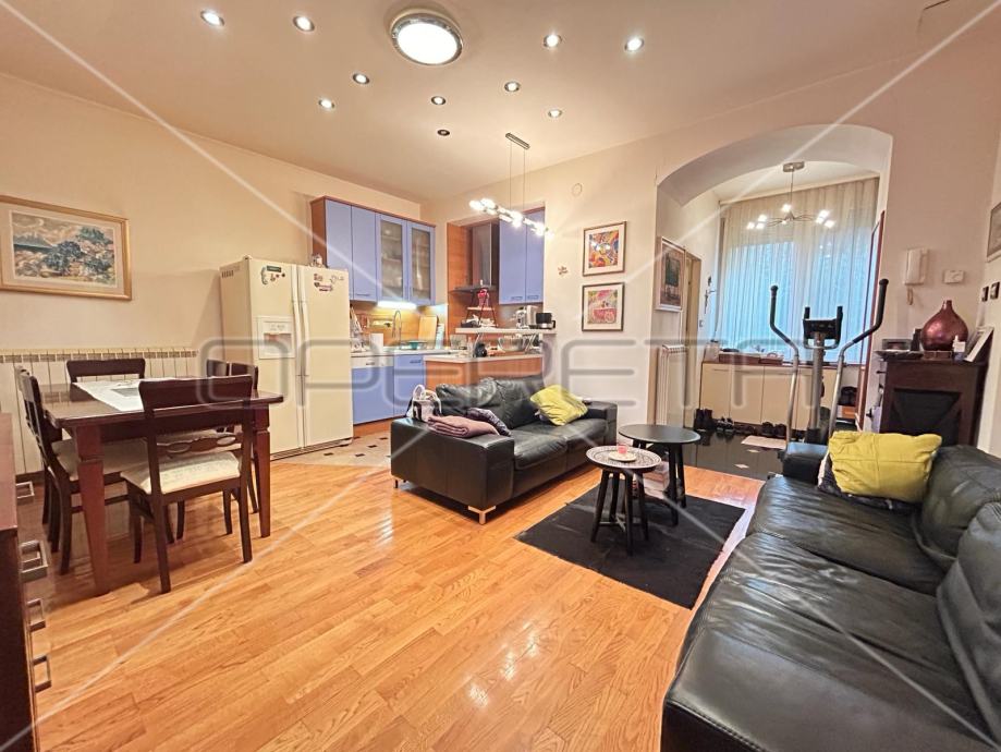 Na odličnoj i traženoj lokaciji se prodaji nalazi prostrani stan. Smješten je u visokom prizemlju od ukupno 3 kata u zgradi iz 1894. godine. Sastoji se od ulaznog dijela, dnevnog boravka u komunikaciji s kuhinjom i dnevnim boravkom, 2 spavaće sobe, izba te kupaonice s WC-om.
