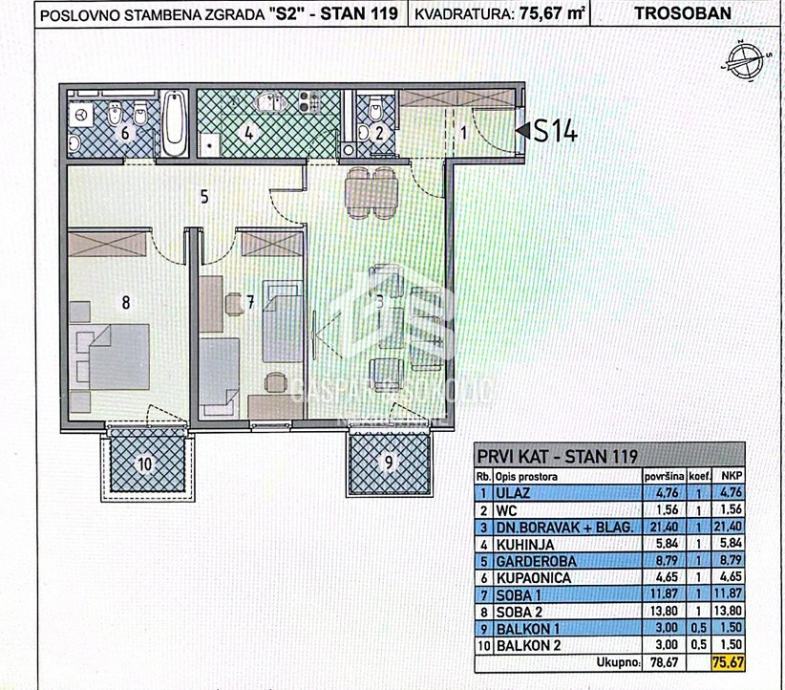 Prodaje se funkcionalan i moderno projektiran stan površine 75,67 m², smješten na prvom katu kvalitetne stambene zgrade s liftom, u naselju Dugave, uz Sarajevsku cestu. Riječ je o atraktivnoj lokaciji u razvoju, a dodatnu vrijednost donosi planirana tramvajska pruga koja će značajno unaprijediti prometnu povezanost i dostupnost.