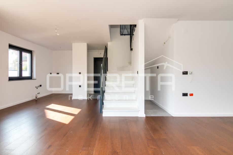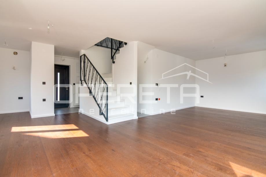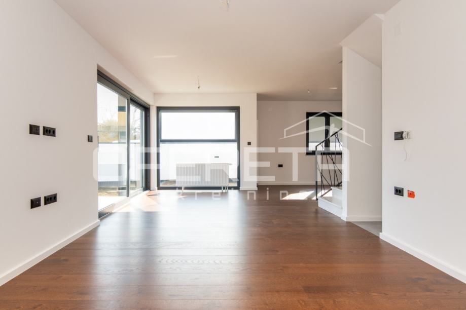 PRODAJA, STAN, NOVOGRADNJA, ZAGREB, GAJNICE, 167m2, Dubravica, 5-soban. Moderan projekt novogradnje s dva prostrana dvoetažna stana u sklopu dvojnog objekta/kuća u nizu s vlastim vrtom, dvorištem, garažom i parkirnim mjestom.