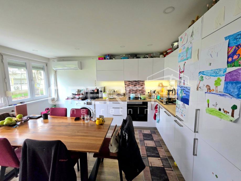Stan se nalazi u prizemlju stambene zgrade sa ukupno 2 kata, a sastoji od ulaznog hodnika, 2 spavaće sobe, kupaonice sa WC-om, i prostrane kuhinje sa blagovaonicom.