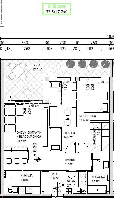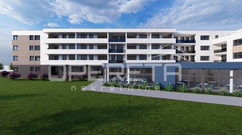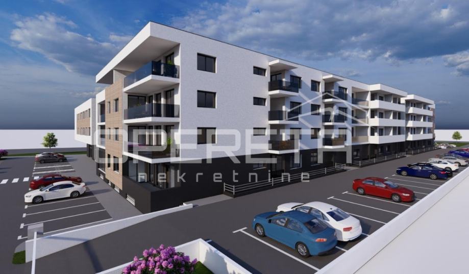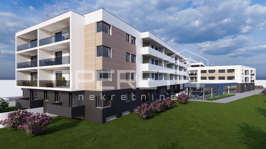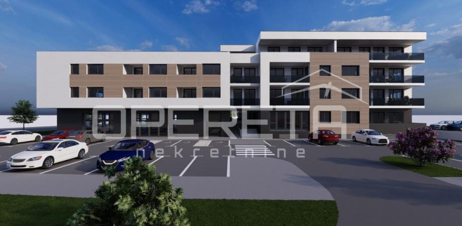 Prodaje se stan površine 72,5 m2 s lođom površine 17,7 m2 na 2. katu niskoenergetske stambeno – poslovne zgrade na odličnoj lokaciji. Zgrada se sastoji od podruma, visokog prizemlja, prvog, drugog i trećeg kata te sadrži ukupno 74 stambene jedinice i 7 poslovnih prostora. Završetak gradnje predviđen je krajem 2025./početak 2026. Energetski razred je A+. Moguć je odabir podnih obloga (keramika, parket ili laminat) te odabir unutarnje stolarije. Uz stan moguća je kupovina i vanjskog parkirnog mjesta po cijeni od 8.000,00 EUR, garažnog mjesta bez spremišta po cijeni od 14.000,00 EUR, garažnog mjesta sa spremištem do 17,4 m2 po cijeni od 17.500,00 EUR, garažnog mjesta sa spremištem do 19,4 m2 po cijeni od 19.500,00 EUR ili garažnog mjesta sa spremištem do 20,6 m2 po cijeni od 22.500,00 EUR.