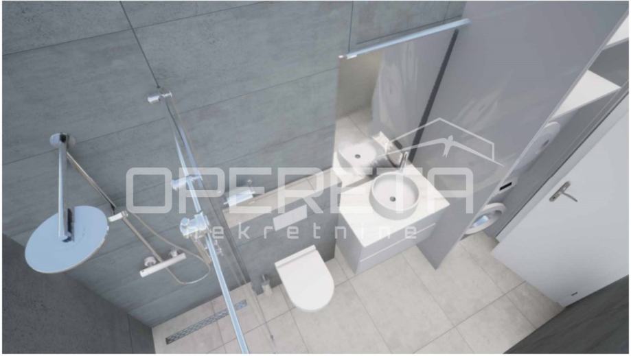 • Stanu pripada vanjsko parkirno mjesto (12,5 m2) i spremište u podrumu (2,66 m2), oboje uključeno u cijenu.