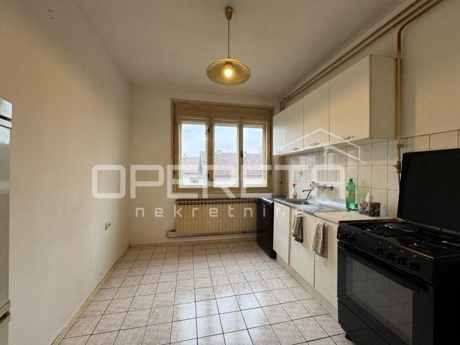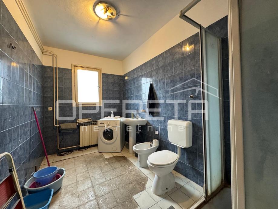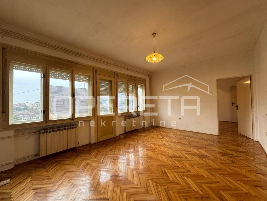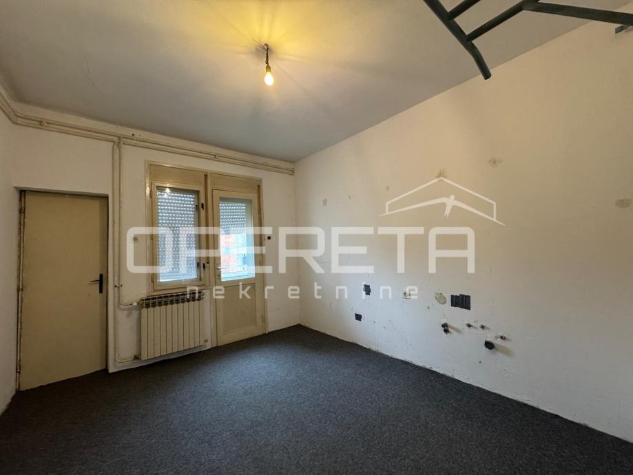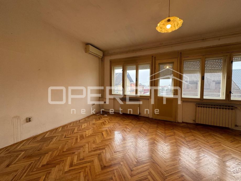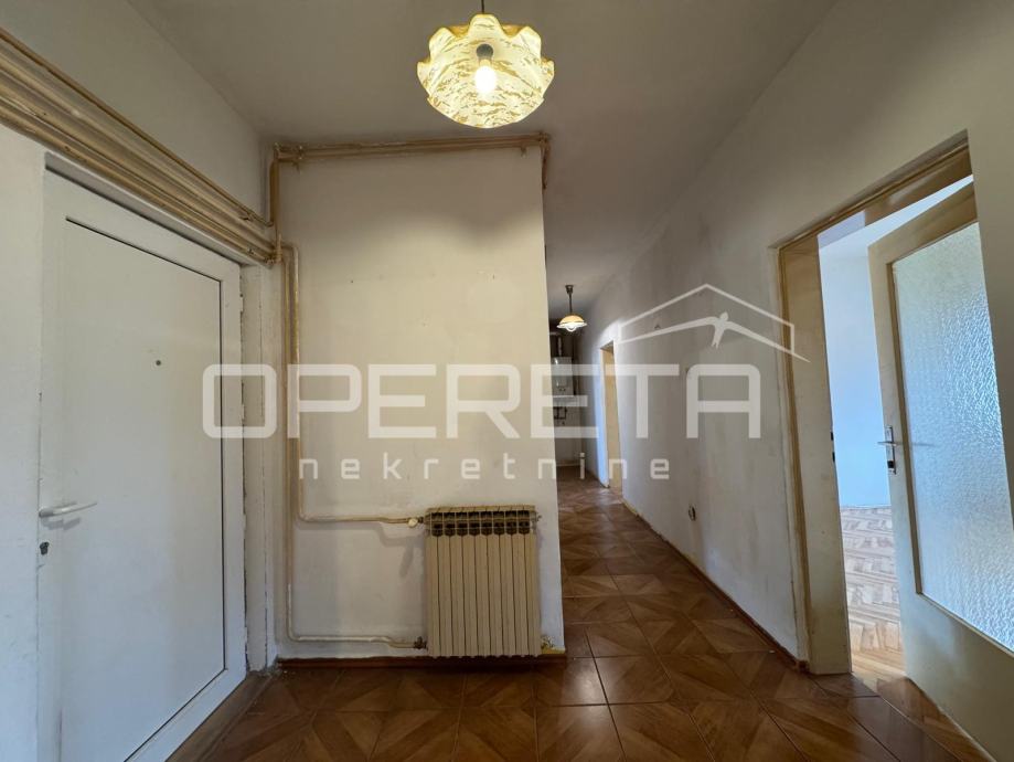 Prodaje se 5soban stan na odličnoj lokaciji u blizini svih sadržaja potrebnih za život (škola vrtić, trgovine, garden mall), odlično prometno povezan (bus i tram. u krugu 200m). Stan je sjajan tlocrtno i nudi mogućnost prenamjene u 2 stana. Sastoji se od ulaznog dijela-predsoblja, boravka, kuhinje, 4 spavaće sobe, kupaonice s wc-om, wc-a i 2 balkona (6,66m2 i 3,16m2). Iznad stana se nalazi još jedan stan u potkrovlju. Krovište zgrade je kompletno promijenjeno 2015 g. Stan je u stanju koje zahtjeva kompletnu adaptaciju. Uredno vlasništvo!