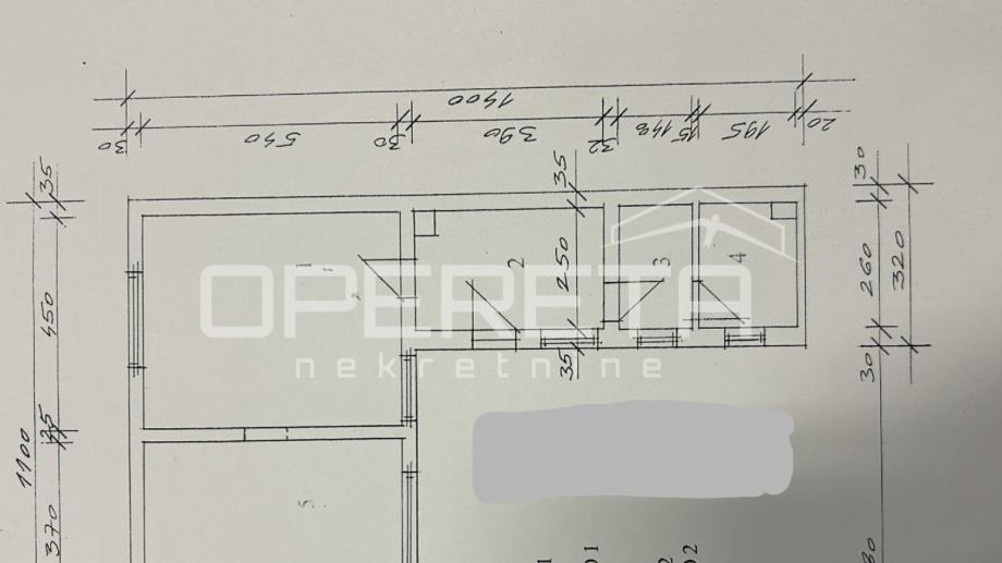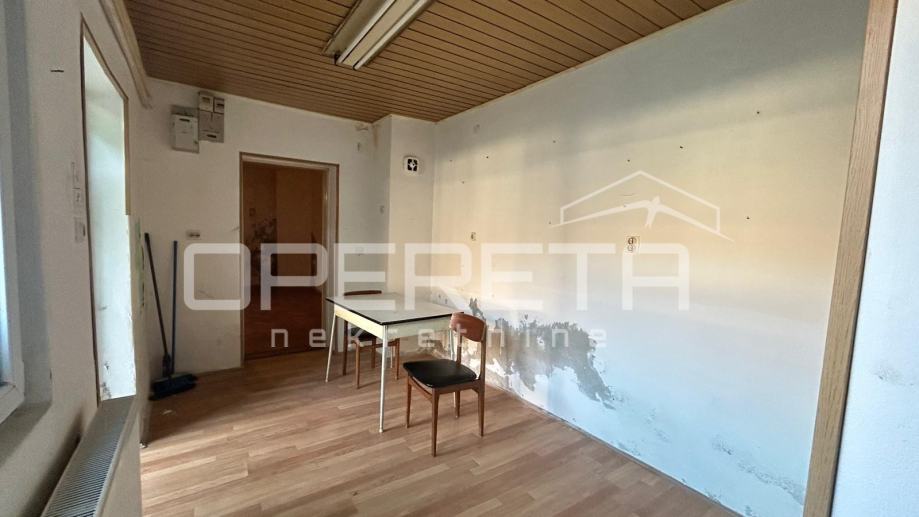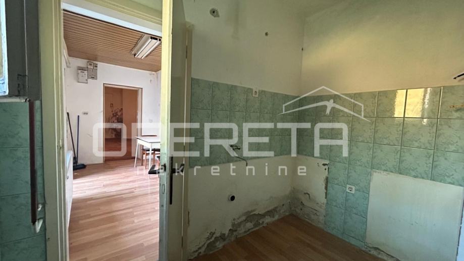 sastoji se od ulaznog hodnika, kuhinje, dnevnog boravka s blagovaonicom i kupaonice s WC-om. Pripada mu i tavan tlocrtne površine 51,41m2 kao i vrt 51m2. Stanu je potrebna kompletna adaptacija. Vlasništvo je uredno.