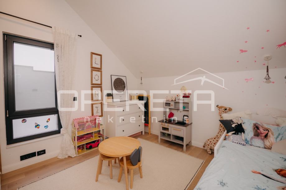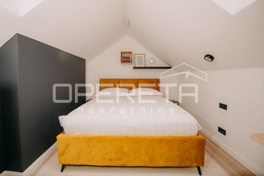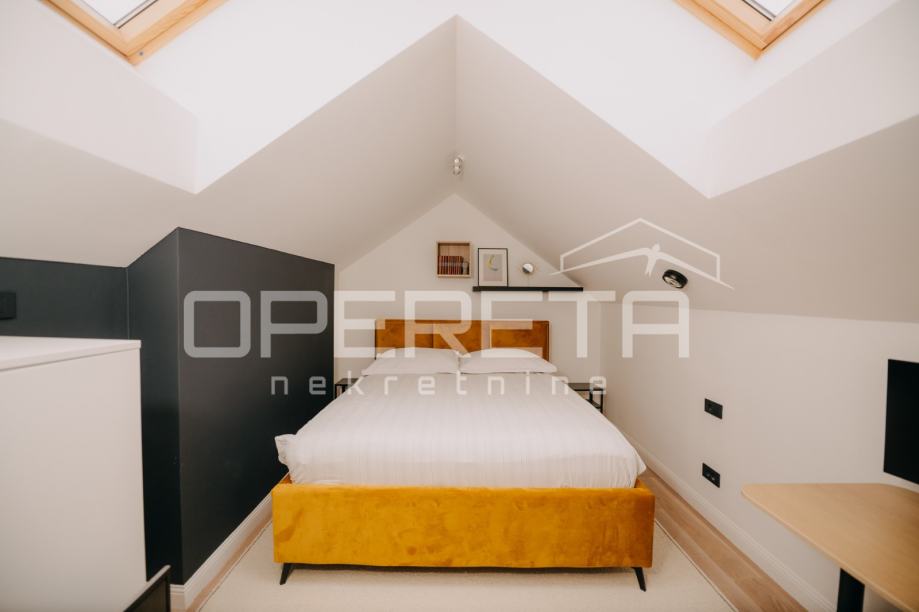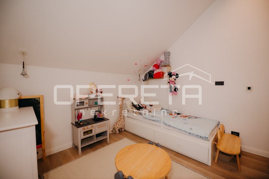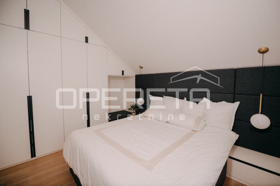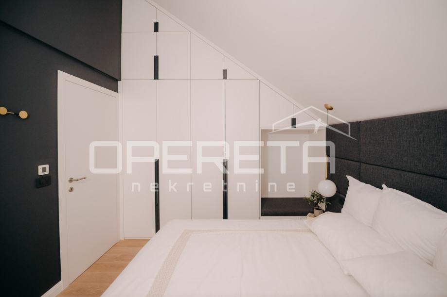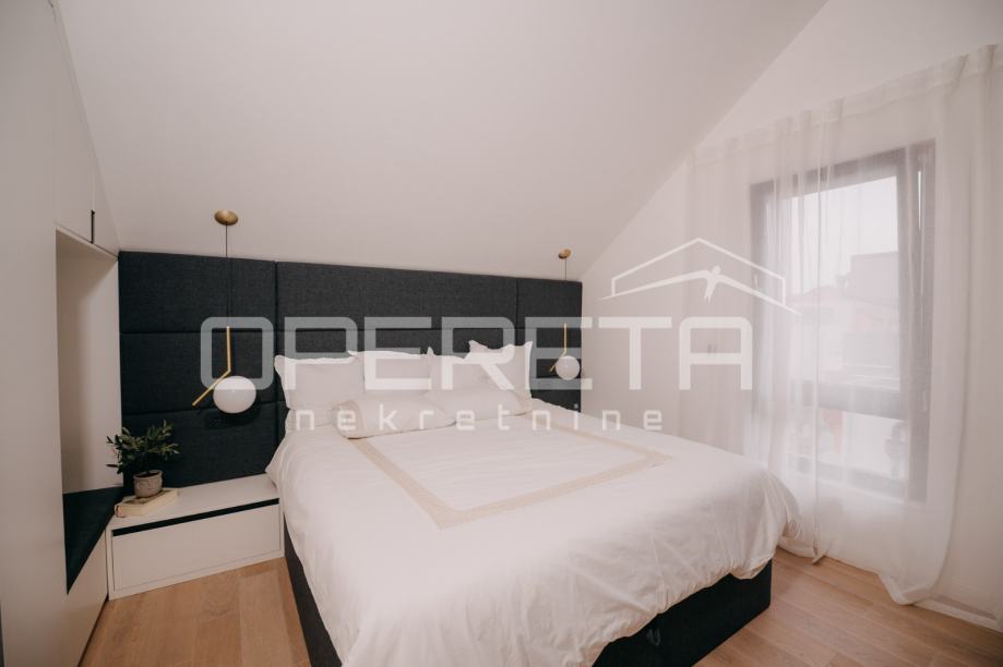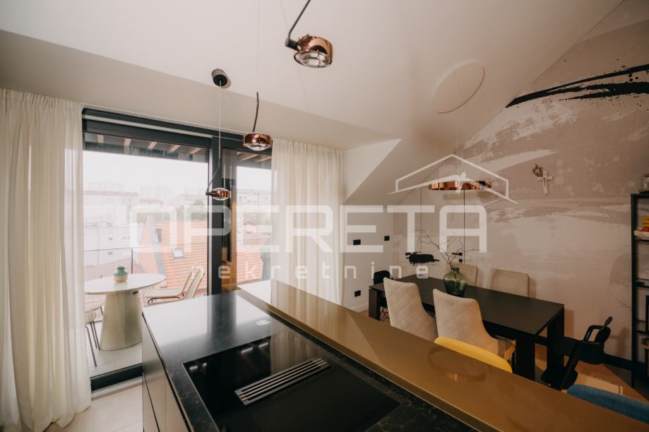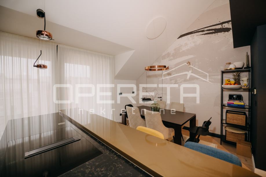 U urbanoj vili iz 2018. godine, sa 8 stanova, prodaje se kompletno namješteni 4sobni penthouse, na 3. katu od 3, do kojeg direktno iz garaže vodi lift.