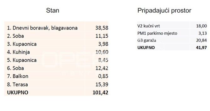 Pripada mu 1 garažno i jedno vanjsko parkirno mjesto i vrt od 180m2.