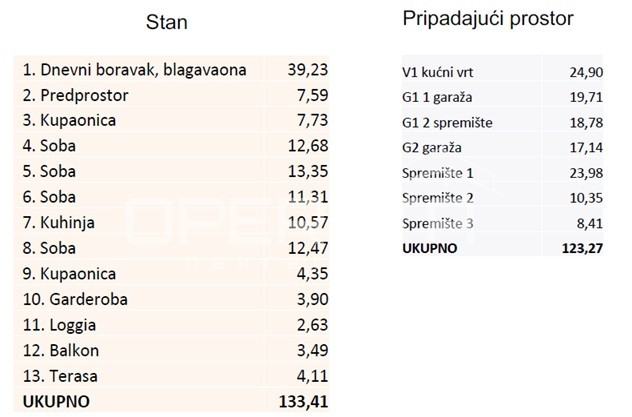 Pripada mu 2 garažna mjesta, 3 spremišta i vrt od 249m2.