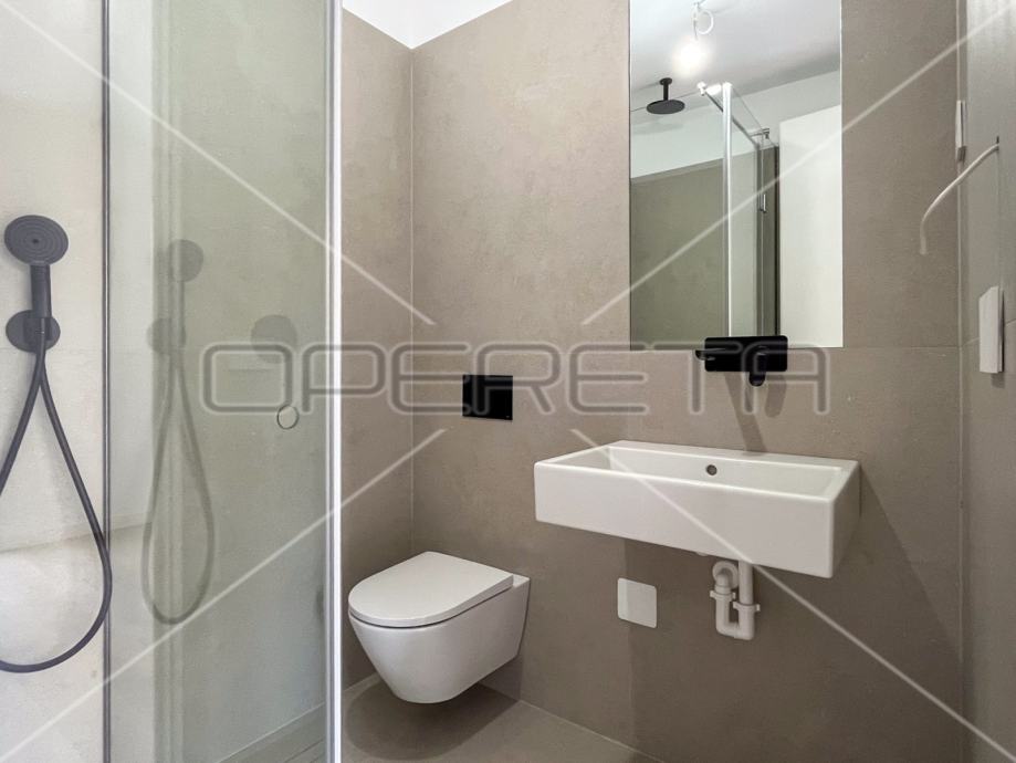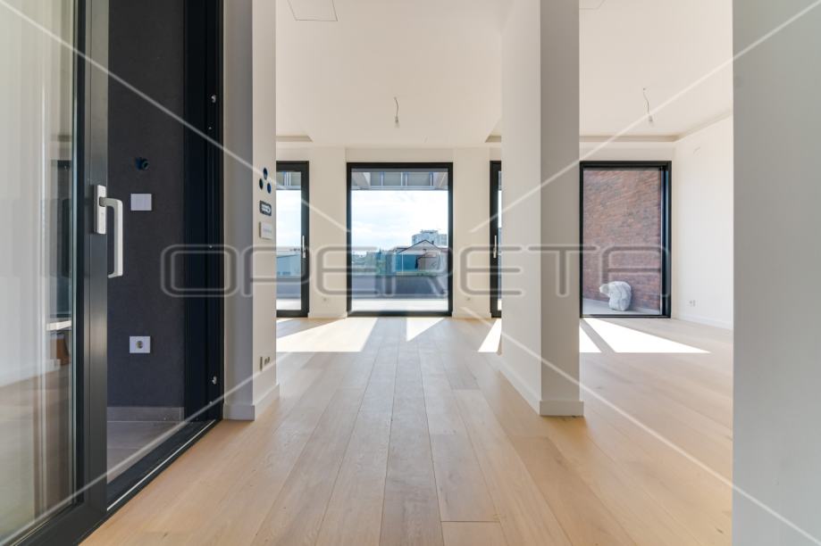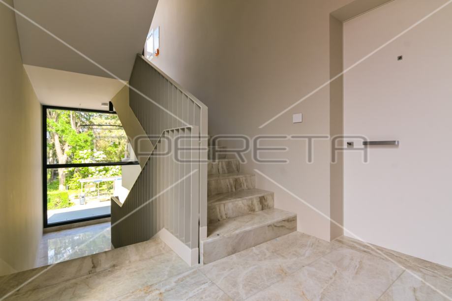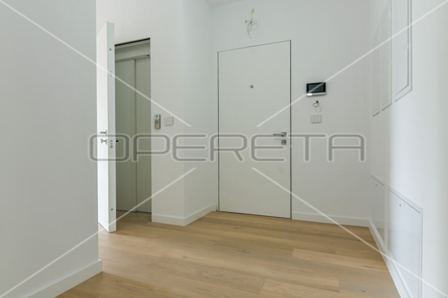 Oprema: kombinacija ventilirane fasada i fasadne opeke, alu vanjska stolarija sa troslojnim staklom, lift, podno grijanje dizalica topline, klimatizirane sve prostorije, protuprovalna vrata, videoportafon, hrastov parket I klase, vrhunska sanitarna oprema I klase. Stan je orijentiran na sve 4 strane od kojih su jug i zapad glavna orijentacija. Visina stropa 280 cm.