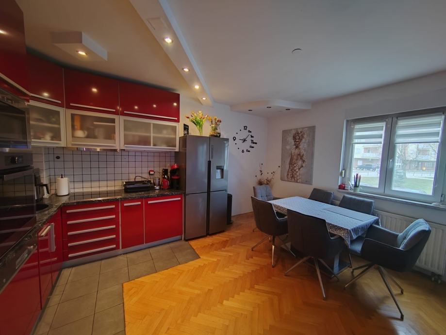 Prodaje se prekrasan, moderno namješten 3-sobni stan površine 52,58 m2, visoko prizemlje, na mirnoj lokaciju na Kajzerici. Stan je idealan za mlade obitelji ili parove koji traže udobnost i blizinu svih sadržaja. Zgrada je smještena na predivnom mjestu, te s pogledom na veliku prostranu livadu na kojoj je u neposrednoj blizini veliki parkić, ali dovoljno daleko da nema buke.