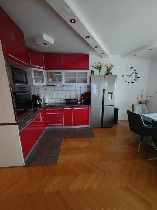 Opremljenost: potpuno opremljena kuhinja po mjeri, klimatizacija u prostorijama, zatvoreni balkon grijan na plinsko etažno grijanje uz mogućnost otvaranja staklenih stijena.