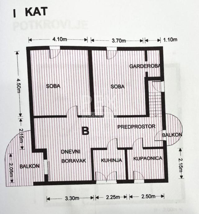 Prodaje se dvosoban stan površine 80,26m2 u roh bau izvedbi koji se nalazi na prvom katu u kući. Kuća još nije etažirana, izrađen je etažni elaborat te će se etažiranje provesti po dogovoru s kupcem.
