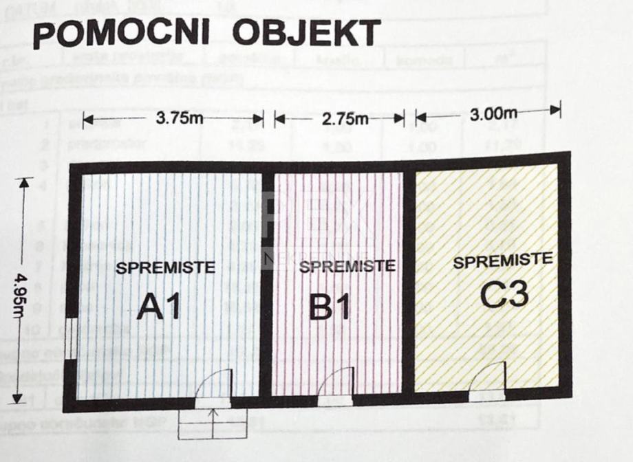 Stanu pripada spremište koje je na nacrtu označeno B-1, ali je ono pretvoreno u garažu te uz stan imate i osigurano parkirno mjesto.