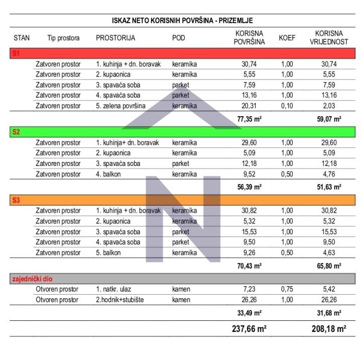 Ukupna neto površina stana sa pripadcima iznosi 94,58m2.