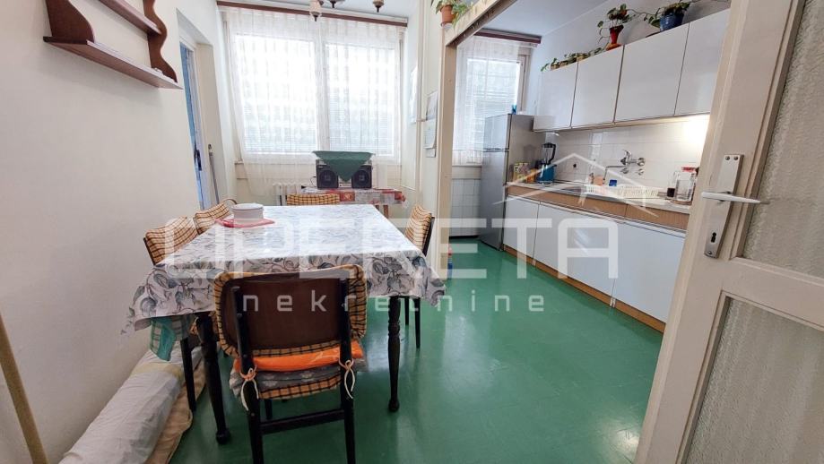 PRODAJA, STAN, ZAGREB, TRNJE, CVIJETE ZUZORIĆ. Prostran i svijetao 3soban stan, koji se sastoji od ulaznog hodnika, kuhinje s blagovanjem, dnevnog boravka, degažmana, 2 spavaće sobe, 2 lođe, kupaonice i wc-a, sve skupa u vl.listu navedeno 81,91m2. Stanu pripada i spremište u podrumu. Čvrsta i održavana zgrada. Odlična mikrolokacija nadomak svih sadržaja te centra grada.
