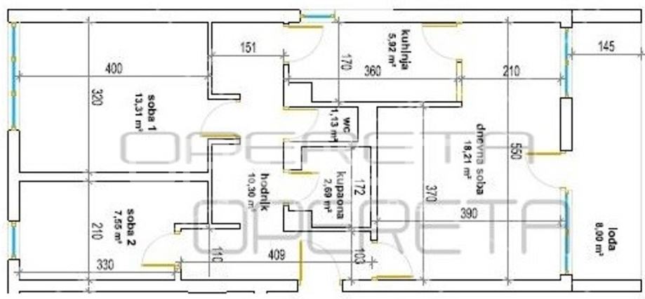 Prodaje se 3S stan na trećem katu od četiri u armirano betonskoj zgradi. Stan je odličnog tlocrta i moguće su razne preinake ( idejna rješenja na upit ). Uz stan dolazi i spremište u prizemlju zgrade koje je uračunato po koeficijentu u ukupnu kvadraturu od 67,18 m2. Nalazi se na traženoj i rijetko dostupnoj lokaciji nadomak samog centra grada, a u blizini osnovne škole, vrtića, javnog prijevoza i ostalih sadržaja.