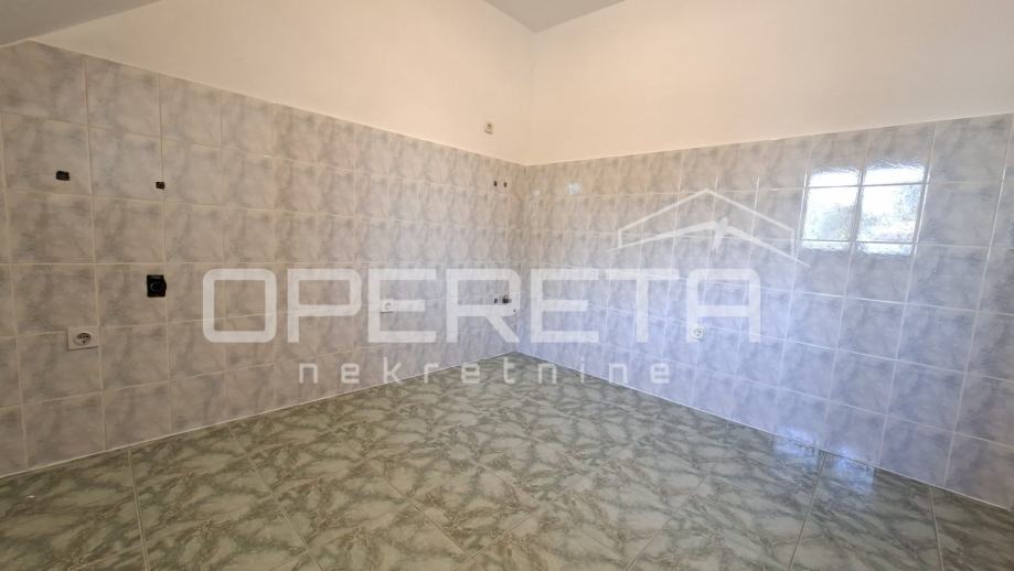 Jednosoban stan na prvom katu kuće, 30,78 m2 + 24 m2 pripadajućeg vrta (od kojeg se dio koristi kao parkirno mjesto) + 24 m2 tavan. Kompletna renovacija stana (podovi, pločice, instalacije) i cijele kuće (fasada, okućnica, krov) je napravljena 2006. godine nakon čega se stan nije koristio.