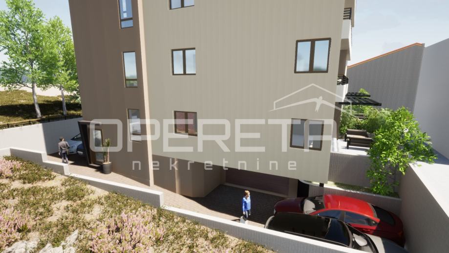 Zgrada se nalazi na mirnoj lokaciji s pogledom na more, a u neposrednoj blizini dostupni su svi potrebni sadržaji poput trgovina, škole, plaže i ostalih gradskih pogodnosti. Spoj kvalitetne gradnje, moderne arhitekture i atraktivne mikrolokacije čini ovu nekretninu izvrsnom prilikom za kupnju.