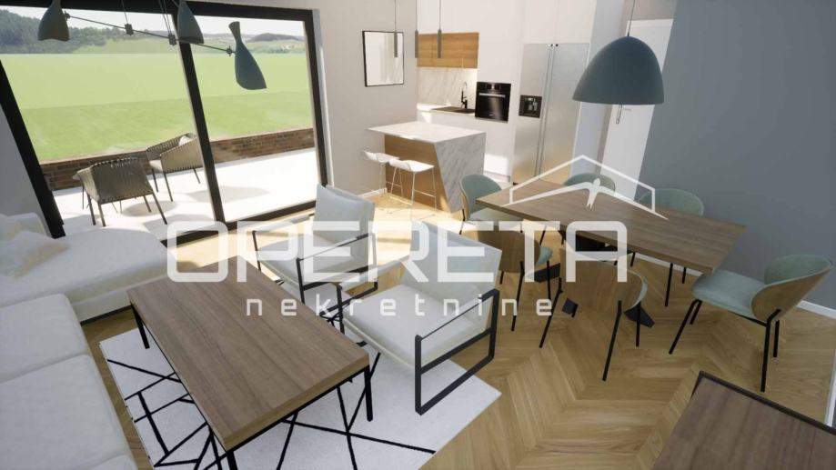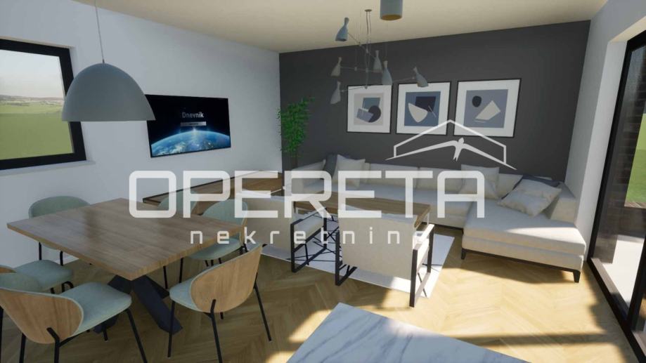 • Dnevnog dijela – otvoreni tlocrt s dnevnim boravkom, kuhinjom i blagovaonicom te izlazom na terasu s prekrasnim pogledom (27,78 m2, obračunski 6,95 m2)
